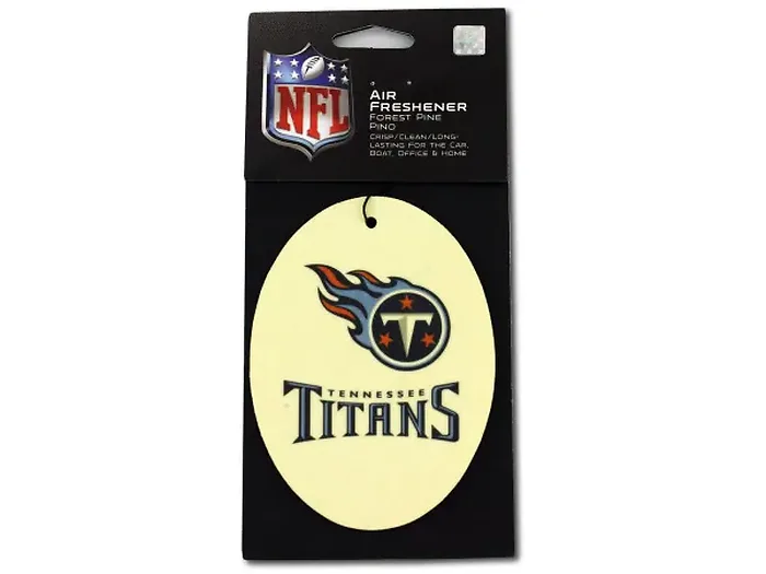 Keep your car smelling fresh and clean while showcasing your love for the Tennessee Titans. This air freshener features the iconic Tennessee Titans logo and is infused with a delightful pine scent. Perfect for any fan, it comes conveniently packaged in an official NFL poly bag with a header card, making it a fantastic gift or addition to your car accessories.