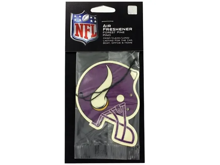 Enhance your car's ambiance while showcasing your support for the Minnesota Vikings. This air freshener features the iconic Vikings helmet with logo, delivering a refreshing pine scent that keeps your vehicle smelling clean and inviting.