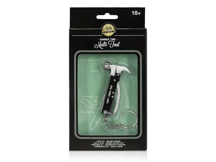 The Hammer Time All-in-One Multi-Tool Keychain is the ultimate companion for any DIY enthusiast or outdoor adventurer. Designed to fit perfectly on your keychain, this innovative tool resembles a hammer and provides a variety of essential functions.