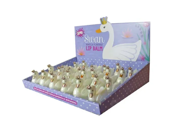 Introducing the Swan Lip Balm in a stylish countertop display, perfect for keeping your lips soft and moisturized. This attractive display includes a variety of delightful flavors that cater to every taste. Designed for convenience, it can be placed in stores, salons, or your own space to ensure easy access to lip care.