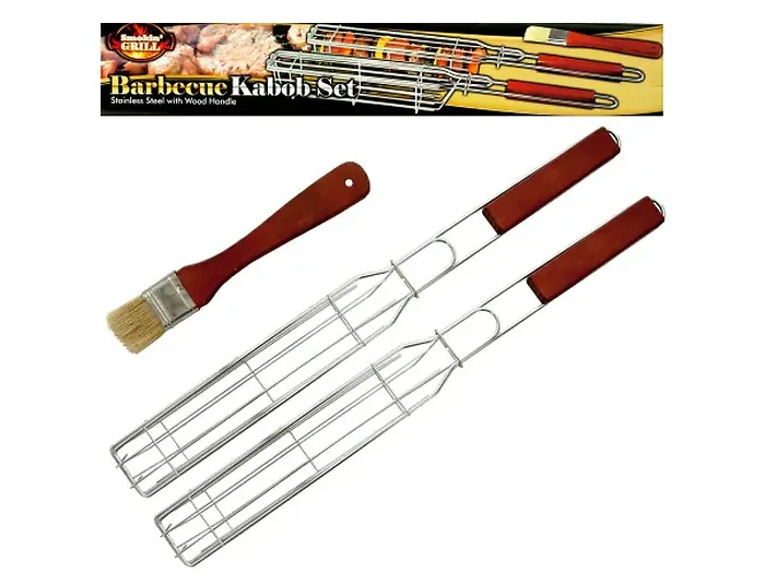 This set features two kabob cages and one basting brush, all neatly packaged in a durable box for easy storage and transport. Perfect for backyard barbecues or campsite cooking, the Deluxe Grilling Kabob Set is an essential for kabob lovers.