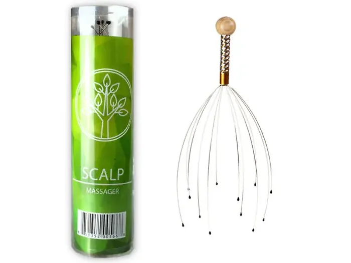 Relax, enjoy and escape with this Scalp Massager features a gentle design that will send tingling sensations from scalp to toes and transport you to a more relaxing place. The custom fit fingers will bend to fit and massage your head. Use it on your scalp, knee joints, ankles, and elbows. Measures approximately 9 3/4" long. Comes packaged in a cylinder box. Box measures approximately 9" in length x 2.25" diameter.