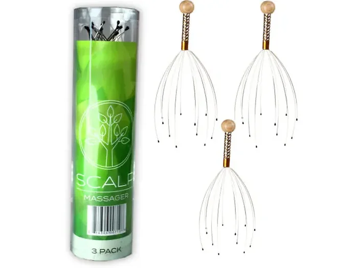 Relax, enjoy, and escape with this set of three Scalp Massagers. Featuring a gentle design, these massagers send delightful tingling sensations from your scalp to your toes, transporting you to a more relaxing place. The custom-fit fingers bend to conform to the contours of your head and can also be used on knee joints, ankles, and elbows.