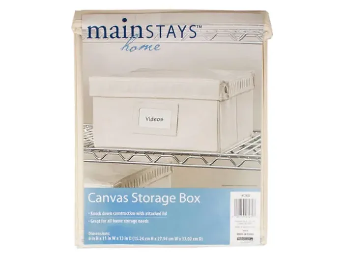 The Mainstays Canvas Storage Box is perfect for all your organizational needs. Measuring 6" x 11" x 13", this versatile storage solution features a convenient knockdown construction with attached lids, making it easy to assemble and store. Ideal for use in dorms, homes, or offices, this storage box helps keep your space tidy and clutter-free. Packaged in a secure polybag, it’s both durable and stylish.