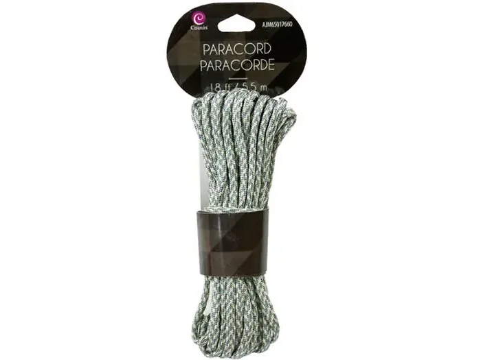This 18 ft paracord in stylish gray and ivory colors is perfect for a variety of applications, from outdoor adventures to crafting projects. Made of high-quality nylon, it offers strength and durability while maintaining flexibility for any task at hand.