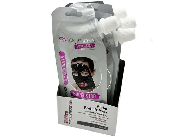Experience the rejuvenating power of the SpaScriptions Charcoal Glitter Peel-Off Facial Mask. Infused with premium charcoal, this innovative peel-off mask provides a deep cleanse, leaving your skin feeling fresh and revitalized. Enjoy a luxurious 30-minute facial therapy that helps minimize the appearance of pores while smoothing and strengthening your skin. Ideal for sleepovers, beauty nights at home, or a self-care day, this easy-to-peel black glitter mask ensures a delightful experience.