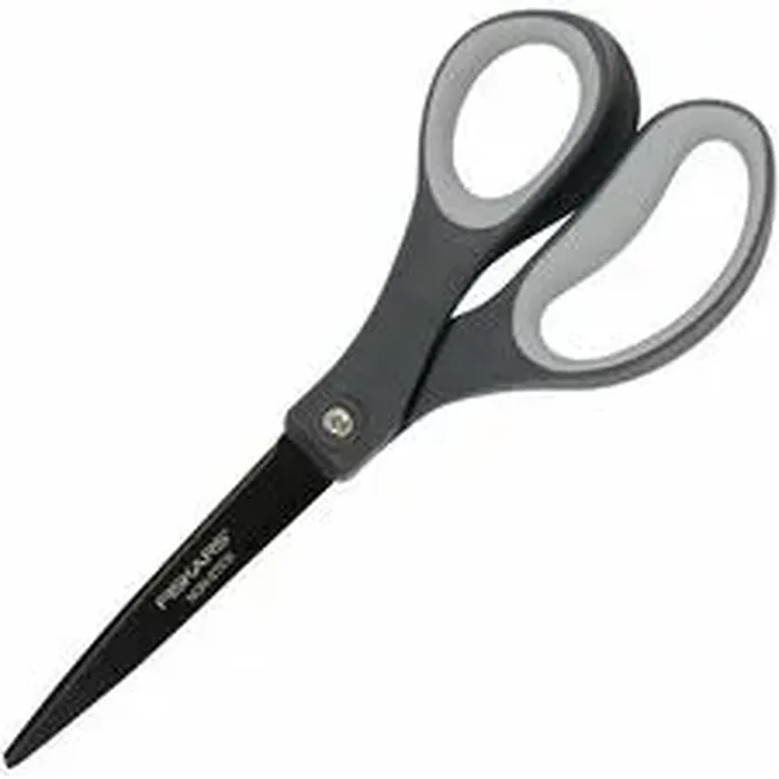 Fiskars Non-stick Titanium Softgrip Scissors - 8" Overall Length - Stainless Steel - Straight Tip - Gray - 1 Each
