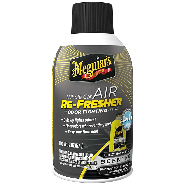 Maybe the inside of your car has unwanted smells, or maybe it’s just a little bit less than fresh. Either way, we have the perfect solution with Meguiar’s Air Re-Fresher Odor Fighting Mist Ultimate Scent. This premium car air freshener instantly fights odors while leaving behind a long-lasting, refreshing scent that reminds you of premium scents like pineapple, cherry, and pomegranate. It works great at fighting smells like cigarette smoke, food odors, workout gear, and more!