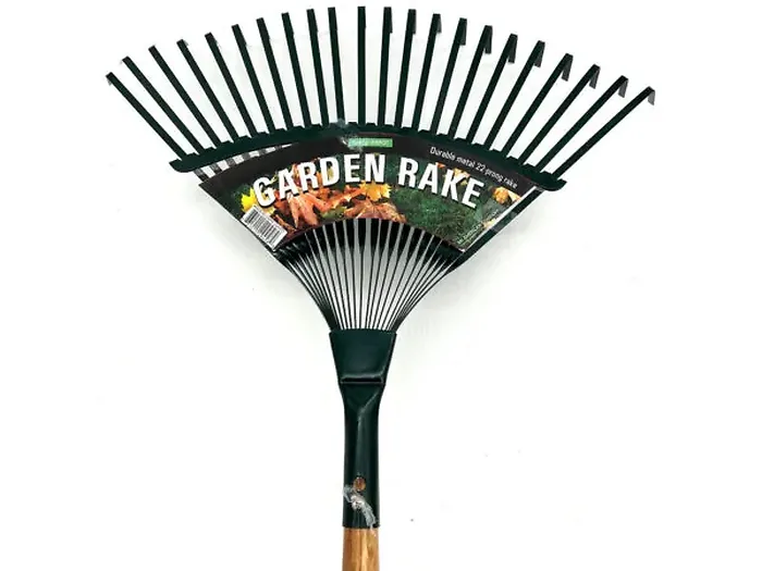 22-Prong Bent Steel Garden Rake with Wood Handle