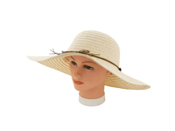 The Adult Fashion Woven Sun Hat is the perfect way to accessorize your Spring and Summer look while protecting your face from direct sunlight. Pack this gorgeous fashion hat when headed on vacation, road-tripping, or days at the beach. Also great for every day wear running errands, attending sporting events, taking your pet out for walks, or just to make a stylish statement. The hat has an elastic chin strap for a secure hold, especially on windy days. The hat is Adult - one size fits most. Made of durable 100% polyester, the brim will keep its shape. There is a decorative trim around the hat made of cords and beads. Comes packaged loose with a hang tag. Measures approximately 16.5" x 4.33".