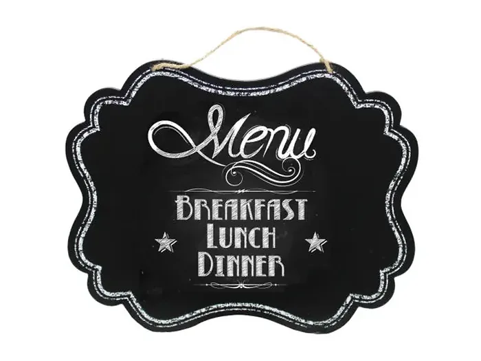 This chalkboard is also ideal for menu displays, event signage, or any creative project you envision. It comes in two assorted styles and features a blank surface framed in a printed white border.