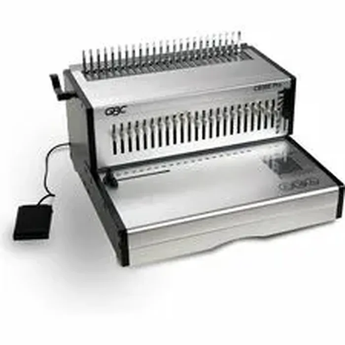 General InformationManufacturer:ACCO Brands Corporation Manufacturer Part Number:WSM200005 Manufacturer Website Address:http://www.acco.com Brand Name:GBC Product Line:CombBind Product Model:CB30E Product Name:CombBind CB30E Pro Punch/Bind Machine Marketing Information:Punch and bind documents all in one place with the GBC CombBind CB30E Pro Punch/Bind Machine. Perfect for busy offices and print shops, this all-in-one machine features an electric punch that handles up to 30 sheets at a time and a manual binding function that binds up to 500 sheets with a 2" CombBind spine. Adjustable margin depth and disengageable pins allow for customized punching of up to 23 holes in documents up to 14" wide. A convenient foot pedal provides hands-free operation, while helpful features such as a heavy-duty casing, edge guide and high-volume, easy-access clipping tray ensure durability and efficiency for large binding projects.