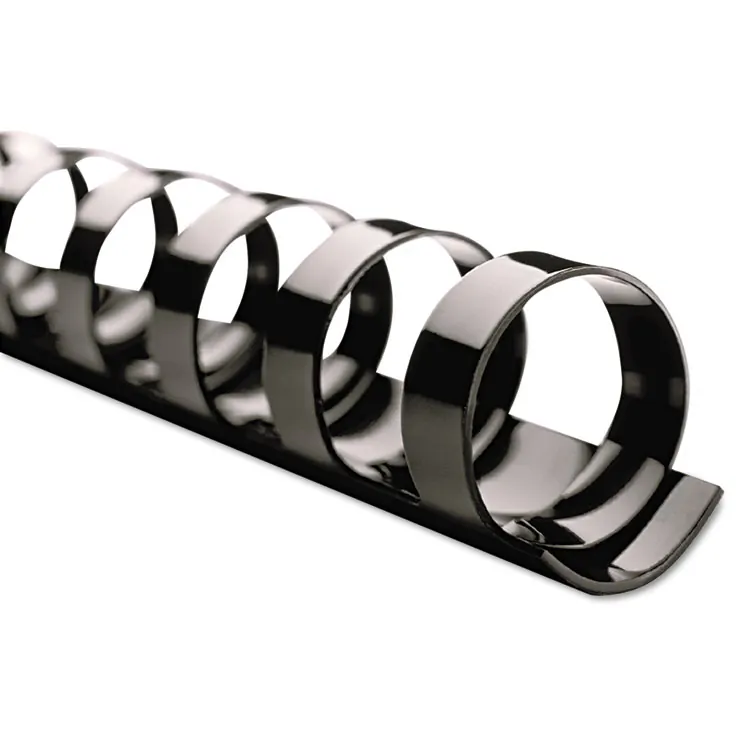 These durable, 19-ring binding spines are compatible with any comb-style binding machine and 19-hole, prepunched accessories. Use the CombBind binding spines to produce neatly bound documents and presentations. These durable, plastic spines allow pages to lie flat and won't scratch, chip, peel or discolor.
