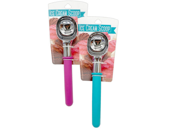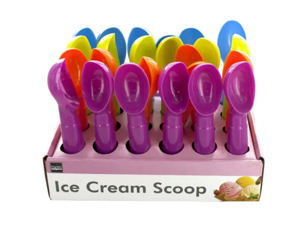 This vibrant Ice Cream Scoop Countertop Display makes serving frozen treats effortless and fun! Each scoop is crafted from sturdy plastic and comes in three exciting transparent colors: red, blue, and green. The scoops are neatly arranged in a convenient PDQ display, perfect for easy access. With 36 scoops included, it's an essential addition for any ice cream shop or party.