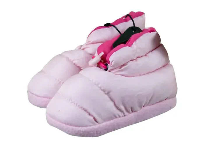 Keep your child's feet warm and cozy with these stylish Puffy Slippers. Designed in a fun boot style, these slippers feature a hard plastic non-slip sole and a padded footbed lined with soft faux fur for maximum comfort. The innovative elastic no-tie shoelace allows kids to easily adjust the fit, making them perfect for everyday wear.