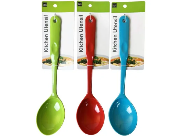 With its durable melamine construction, this serving spoon is designed for everyday use and convenience. Packaged on a hanging tie card, it’s an excellent gift option as well.