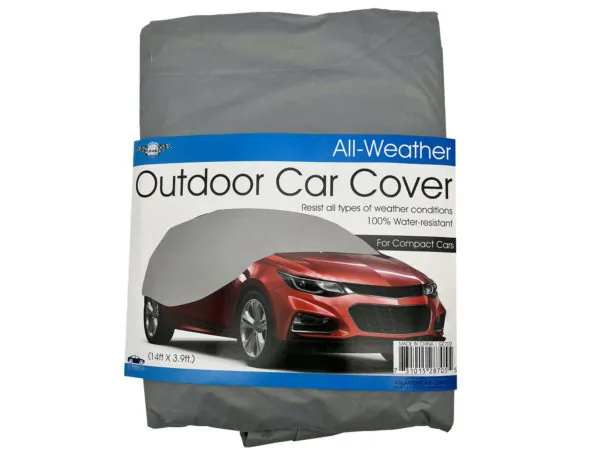 Protect your car from the harsh outdoor elements with this All-Weather Outdoor Car Cover. Made for subcompact cars, this 100% water-resistant cover helps keep you from getting dirty and wet during rainy seasons. The PEVA car cover also helps keep your paint from fading and scratching while also helping save your car interior from discoloring and cracking. Great for storing your autos in garages, car collectors, and showrooms. Measures 13 feet x 3.9 feet. Comes packaged inside a strong poly bag with a hanging hook.