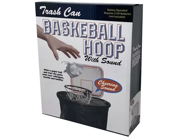 Transform your workspace into a basketball arena with the Mini Trash Can Basketball Hoop with Sounds! This fun and engaging game lets you practice your shot while working from home or at the office. Simply clip the hoop onto any standard trash can and get ready to score! Assemble the backboard, hoop, and base easily with a screwdriver, and you'll be shooting paper balls into the net in no time.