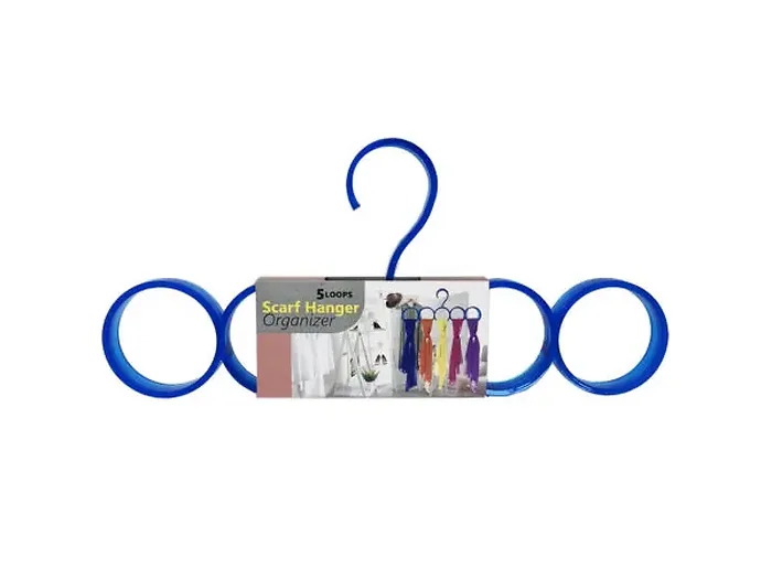 This Versatile Blue Plastic Scarf and Accessory Organizer features 5 functional loops designed to keep all your fashion scarves neatly stored and easily accessible in your closet. Crafted from durable acrylic, this hanger can hold various items such as scarves, handkerchiefs, bandanas, belts, lightweight shawls, and face masks. Perfect for maximizing closet space, it can be conveniently hung on an over-the-door hook or kept within your closet. With dimensions of 12.5" x 5.7" x 0.75", this organizer is both practical and stylish.