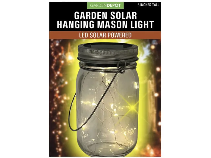 Made with real glass, this Hanging Mason Jar Filled with Solar Power Twinkle Lights is a magical and whimsical addition to outdoor and indoor spaces! No batteries are needed! Place the mason jar solar panel in the sun to fully charge the lights. As soon as the lights detect darkness, the lights inside the glass jar will turn on automatically. A beautiful decorative piece for a wedding reception, birthday party, or fairytale-inspired party. Each jar is approximately 5" tall and is made with steel components. The handle is perfect for hanging on a porch, in trees, or transporting from one place to another. This adorable and energy-saving light comes packaged inside a color shelf box.