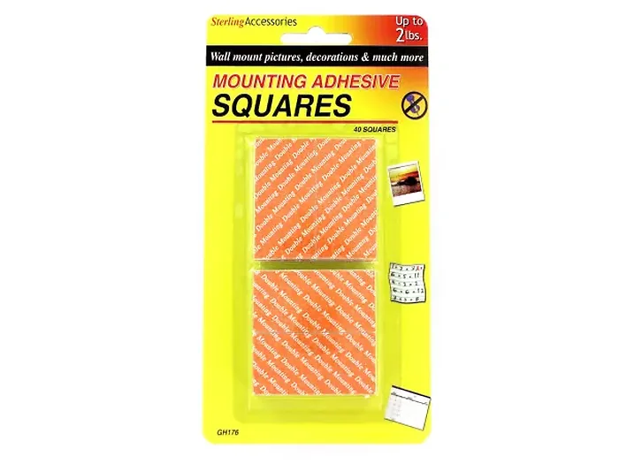 These mounting adhesive squares are perfect for a variety of applications, including securing pictures, decorations, mirrors, and posting notes. This 40-piece set can hold objects weighing up to 2 pounds. Each square measures approximately 2" x 2", and can be easily cut into four 1" squares for versatility.