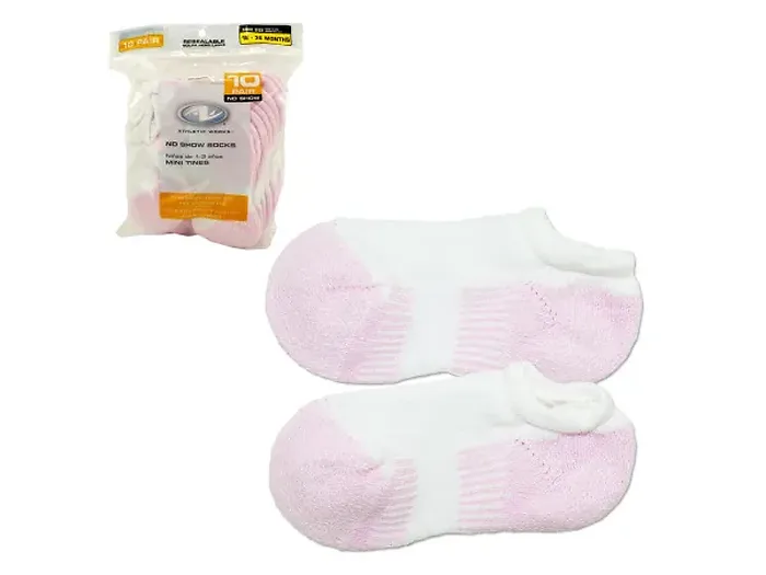 Each package contains 10 pairs of no show socks, perfect for every day of the week. The cushioned soles and reinforced heels provide durability and comfort, making them an ideal choice for active toddlers.