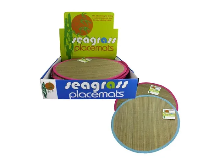 Enhance your dining experience with our Colorful Round Seagrass Placemats. Crafted from natural seagrass, these placemats feature a vibrant nylon border that adds a touch of color to any table setting. Ideal for bringing an inviting outdoor ambiance to your home, they are suitable for various occasions.