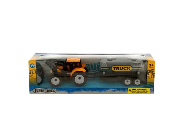 Introduce your child to the fun of farm life with this Friction Powered Tractor with Detachable Trailer. This durable toy features a robust tractor design paired with a removable trailer perfect for transporting logs or other farm supplies.