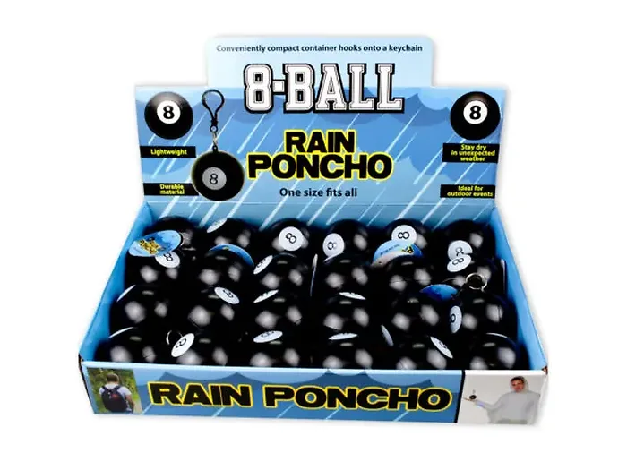 8-Ball Keychain Rain Poncho - Countertop Display of 24