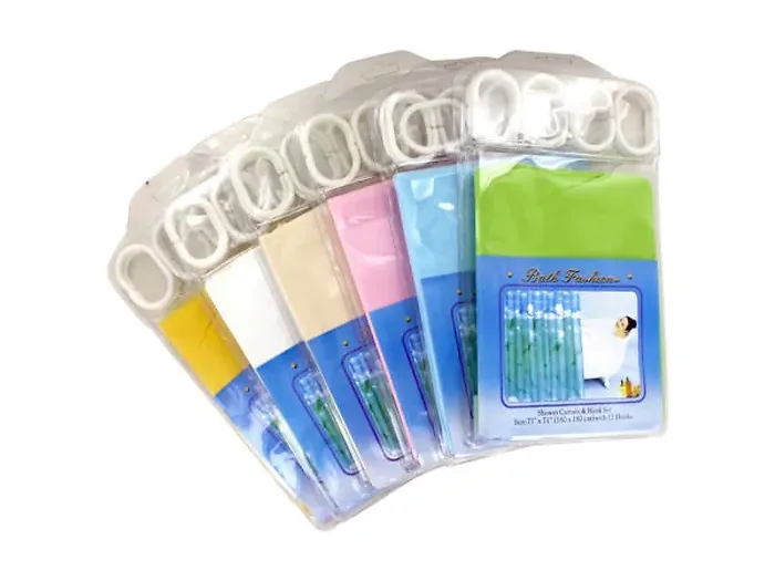 Transform your bathroom with our vibrant Colorful Shower Curtain Set. This lightweight plastic shower curtain is easy to clean and adds a refreshing touch to your space. It comes with 12 durable plastic hooks for quick and hassle-free installation. Measuring approximately 71" x 71", this shower curtain is packaged individually with a convenient hang tag and is available in assorted colors to match your style.