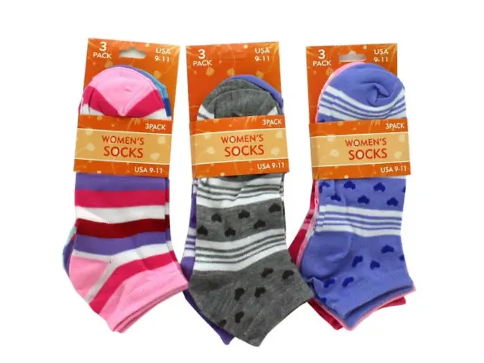 3 Pack Assorted Styles Women's Ankle Socks