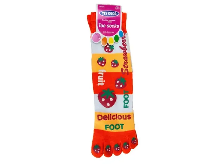 Keep your feet warm and stylish with our Cozy Assorted Ladies Striped Toe Socks. Designed for ultimate comfort, these toe socks are perfect for lounging at home or braving the cold on chilly days. Each pair is made from 100% polyester, providing a soft and cozy texture. With a range of fun and colorful designs, you can express your unique style while keeping your toes happy!