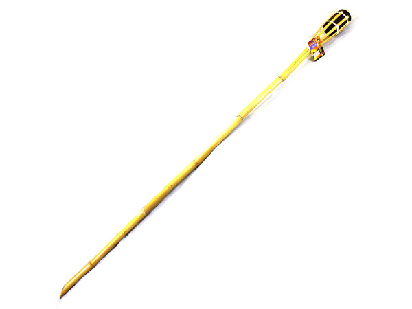 60" Wicker Tiki Torch is an attractive decoration for luau or beach themed parties; this Bamboo Wicker Torch comes with a black refillable canister that holds 4 ounces of oil and burns for approximately four hours. Top screws off easily. These do not come pre-filled. The holder may become hot. Keep away from children and animals. The torch is about 60" tall, including the 7" canister. The canister holds approximately 5 1/2 ounces of oil and has a 5" wick. Comes packaged with a hang tag.