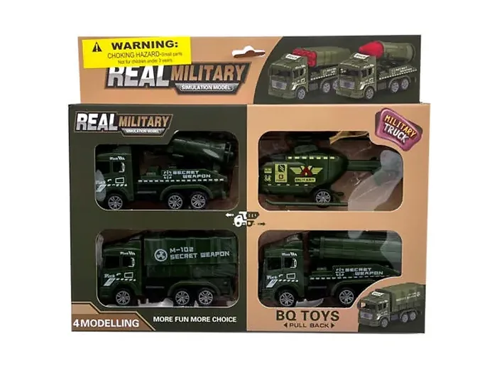 Military Vehicles Toy Set - Truck and Helicopter 4 Pack