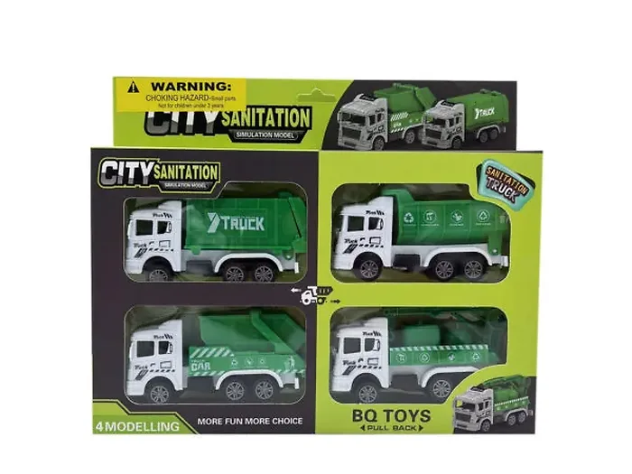 Kids will love creating their own imaginative neighborhood scenes with this 4 Piece Pull Back Toy Truck Set. This exciting collection includes four vibrant city utility vehicles: a secret back loading truck, a sturdy dump truck, a handy recycle hauler, and a supply truck equipped with a crane. The engaging pull-back action provides endless fun and adventure!
