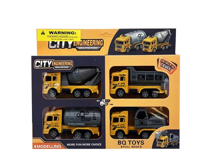 4 Pack Pull Back Construction Site Toy Truck Set