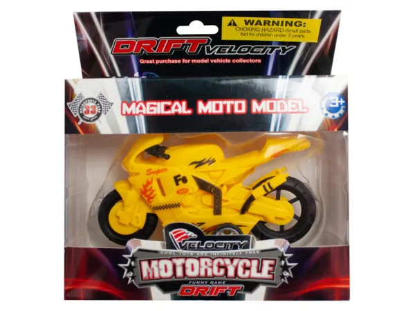 Includes 4 pull-back toy motorcycles