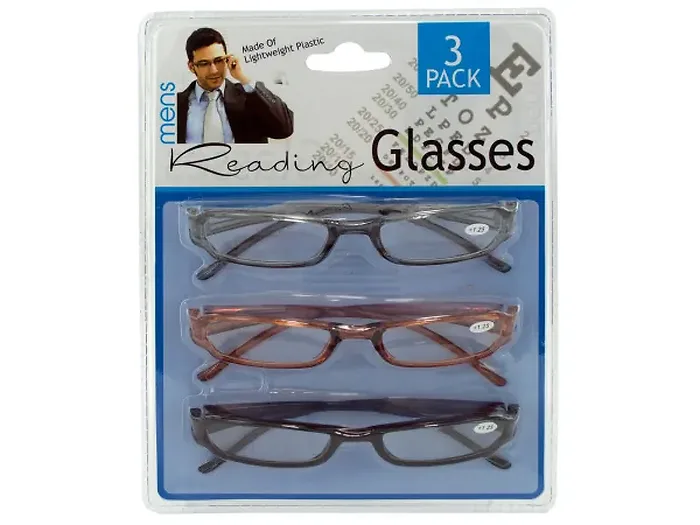 Always have a pair of stylish reading glasses at hand with this 3-piece Men's Reading Glasses Set. Ideal for use at home, in the office, or while on the go, these versatile glasses are perfect for reading, writing, or any close-up tasks.