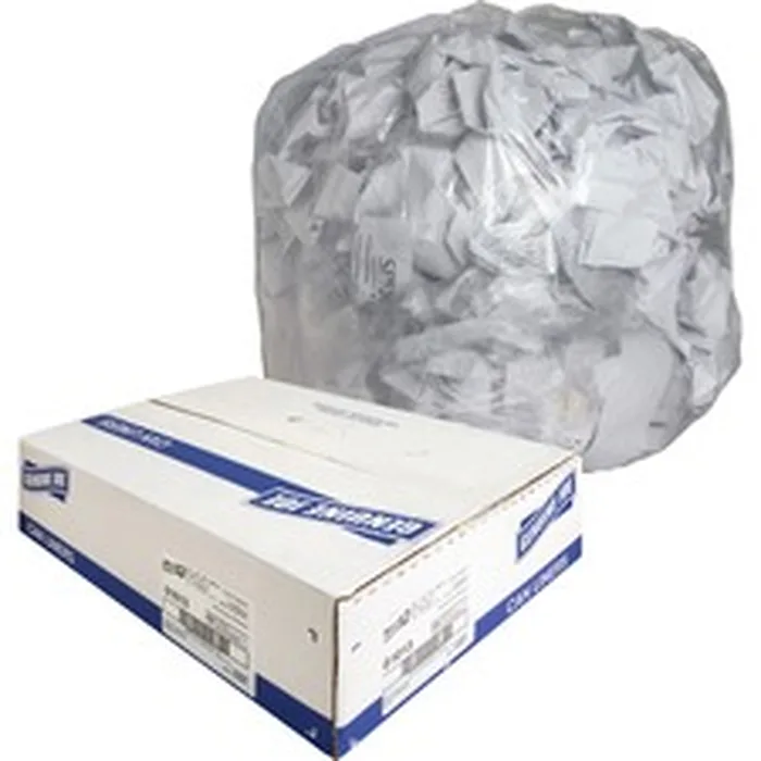 Trash can liners are ideal for recycling and pilferage control. High-clarity, clear film allows easy viewing of contents inside the linear low-density can liner. Linear low-density polyethylene offers a higher tensile strength and superior impact-resistance and puncture-resistance compared to low-density polyethylene. Star-bottom construction easily conforms to any size trash can and spreads trash around the bottom of the bag. The star seal, or X-seal, is designed for more even distribution of contents. Bags come in a convenient coreless roll for easy dispensing anywhere. Each bag holds 31 to 33 gallons of your garbage. Bags are 0.6 mil thick. The bag size is 33" x 39".
