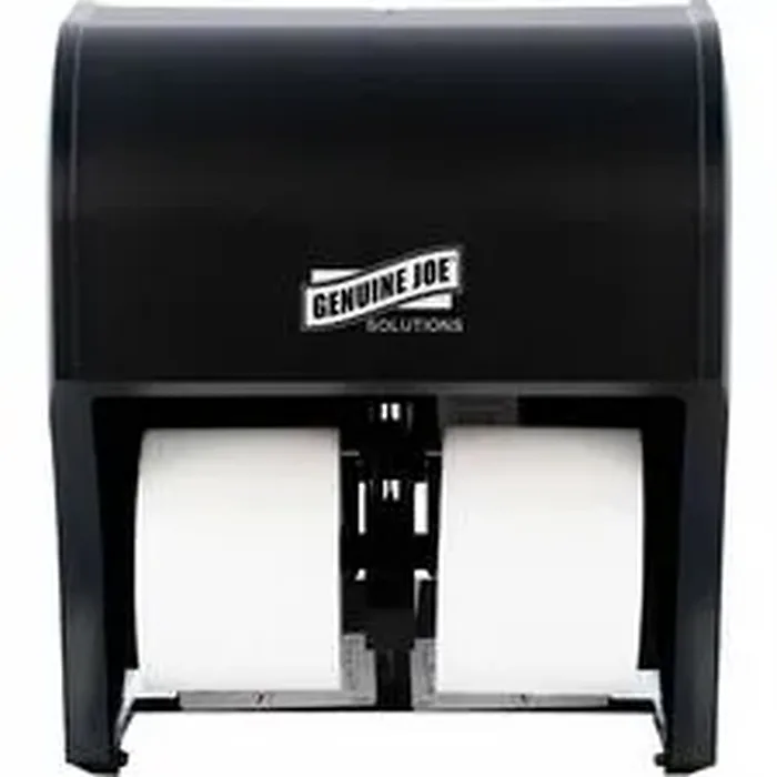 The Genuine Joe Four-Roll Bath Tissue Dispenser is a high-capacity dispensing system that reduces labor costs through fewer roll replacements. Its modern design upgrades the appearance of any washroom while maximizing efficiency.