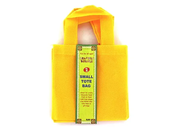Available in a vibrant assortment of colors including yellow, orange, and green, these tote bags come neatly packaged with a wrap-around card for easy gifting and display. Each bag measures 5 3/4" x 5 3/4".