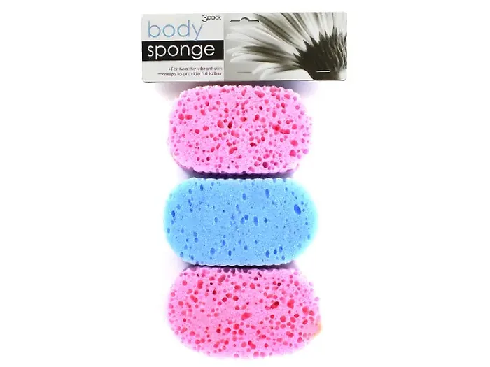 This vibrant 3-piece Body Sponge Set is the perfect addition to your bathing essentials. Featuring three thick foam sponges designed for an optimal lather, these sponges promote healthy and vibrant skin. The set includes two lovely red sponges and one refreshing blue sponge, each measuring 5 inches by 3 inches and 1.5 inches thick. Packaged conveniently in a poly bag with a header card, this sponge set is ideal for both personal use and gifting.
