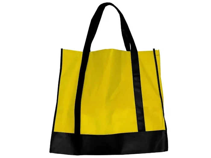 The tote features a vibrant yellow and black color scheme, enhanced with sturdy double carrying handles for comfort. Whether you're heading to the grocery store or packing for a weekend getaway, this tote is your ideal companion.