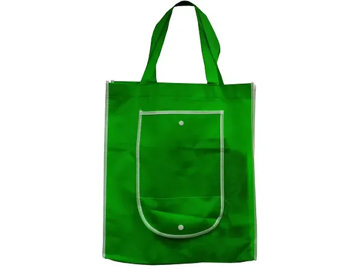 The Expandable Green Shopping Tote with Pockets is perfect for shopping, traveling, and everyday use. This stylish tote features an attractive solid green design with white piping, providing both functionality and flair.