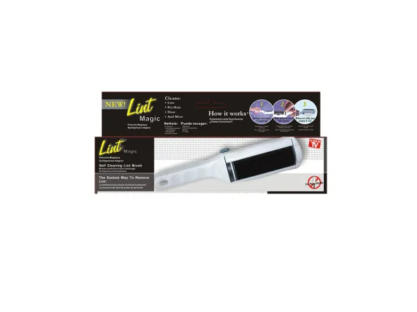 Perfect for removing unwanted hairs, fibers and lint from clothing or upholstery, this easy to use Lint Brush with Microfiber Head features a red microfiber head that clings and grabs lint. Handle is made of durable plastic. Brush measures approximately 10.25" x 2.5" (at its widest) x 0.75". Comes packaged on a tie card in a hanging poly bag.