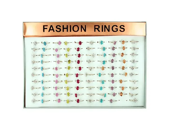 Enhance your accessory game with our Vibrant Adjustable Fashion Ring Display. This set features 100 fun and flirty rings in an array of vibrant colors, including turquoise, red, yellow, lavender, orange, and clear. Each ring is designed to be adjustable, ensuring a comfortable fit for most finger sizes.