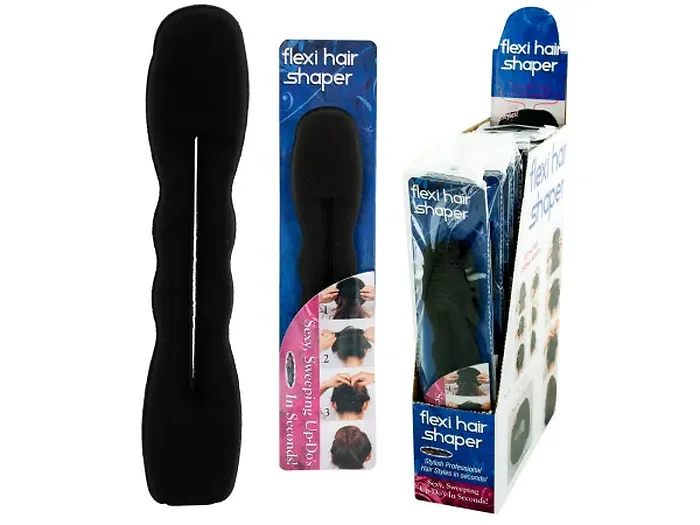 The Flexi Hair Shaper is your ultimate accessory for achieving stunning up-do hairstyles in a matter of seconds! Designed for simplicity, this shaper helps you create a fashionable, professional look effortlessly. Each unit comes in an eye-catching, counter-top display with 12 individually packaged pieces, making it ideal for retail environments.