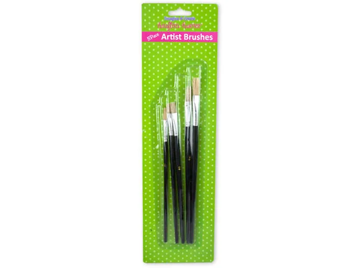 Great for an array of craft and artwork projects, this 5-piece Artist Brushes Set features high quality brushes with pig hair tips and wooden handles in an assortment of sizes. Sizes are: 0, 4, 8, 12 and 16. Comes packaged in blister pack.