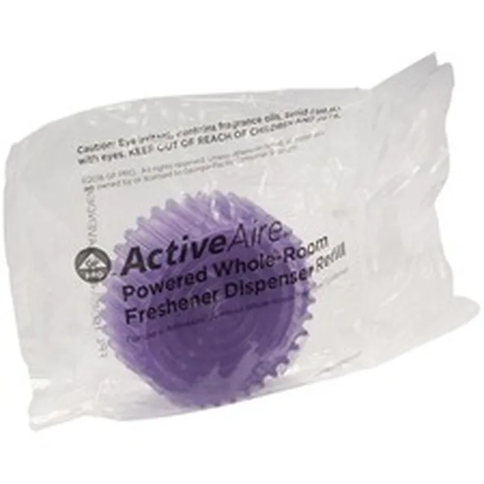Designed for Georgia Pacific ActiveAire Powered Whole-Room Freshener Dispensers, these air freshener refills help stop odors and enhance the restroom experience for all with its pleasantly scented, odor-neutralizing formula. Sustained release provides freshness for at least 30 days. Easy access allows easy maintenance. Lavender scent is a soothing, springlike, floral-fruity fragrance infused with apple, cucumber and violet, softened by powdery undertones. Urinal screens (not included) are available in a matching scent so you can be confident your restrooms will provide a consistent and more welcoming experience. Air freshener refills are compliant for VOC content with applicable federal and state regulations. No liquids or sprays are used. Refills belong to Georgia-Pacific's Take Back Program for recycling.