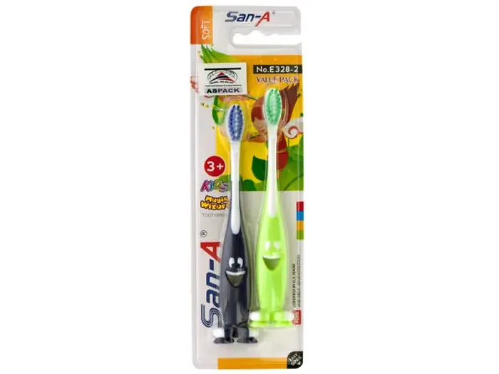 Additionally, the toothbrushes have suction cup feet that allow them to stand upright, promoting hygiene and easy storage. This set is perfect for children and is available in assorted colors.